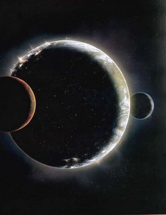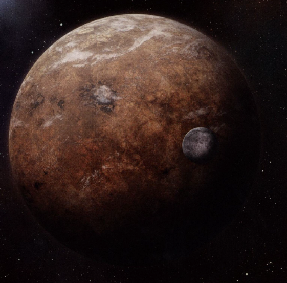 In ancient days Baal and its moons all had Earth-like atmospheres. Baal itself was always a world of rust-red deserts much like Mars but its moons were paradises for mortal men, where their people lived in harmony with nature and pursued lives of ease and freedom. The people of Baal became exceptional artisans and spent their time creating mighty monuments, carving the mountains themselves into statues of their rulers and their gods. They even ventured onto the surface of desolate Baal itself, leaving colonies and breathtaking edifices in their wake. No one knows exactly what happened to change this idyllic state of affairs. All that is certain is that during the fearful events that marked the downfall of interstellar Human Federation and the end of the Age of Technology, the moons of Baal suffered terribly in a civil conflict that was most likely between them.